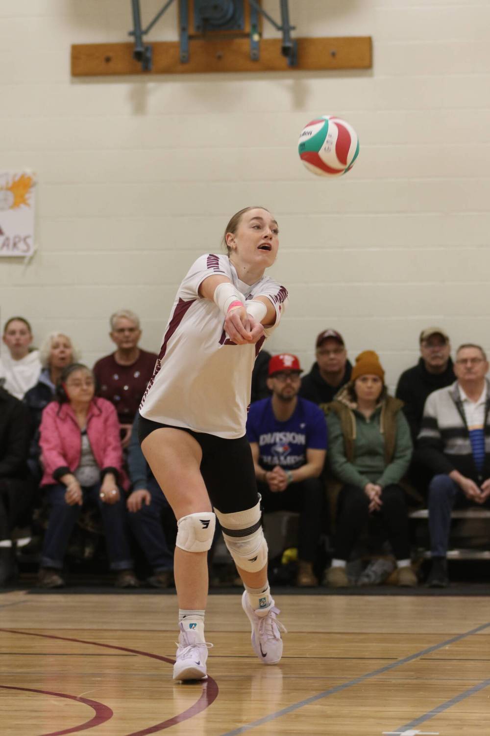 Player of the year Tyra Lasuik reacts as her team scores championship point on Sunday. (Thomas Friesen/The Brandon Sun)