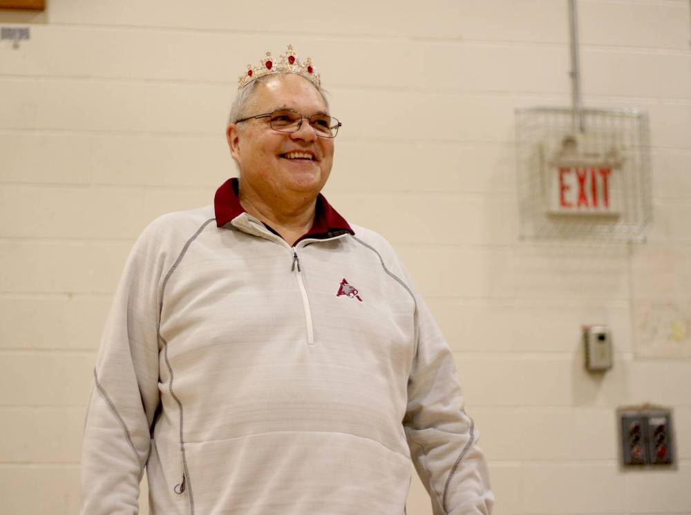 Cougars coach Kevin Neufeld smiles after being “crowned Miss America” by his players. (Thomas Friesen/The Brandon Sun)