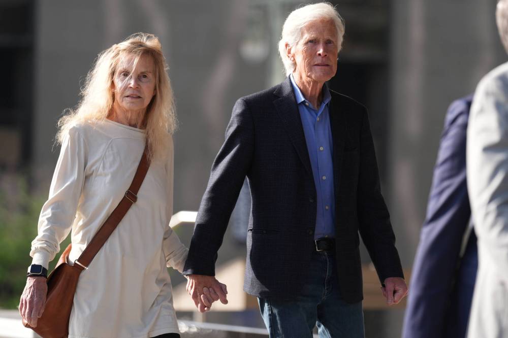 Suzanne Morrison, the mother of Matthew Perry, walks into court with her husband Keith Morrison before Jasveen Sangha, who pleaded guilty to selling Perry a lethal dose of the drug ketamine in the days before his death, appears in court for sentencing in Los Angeles on Wednesday. (The Associated Press)
