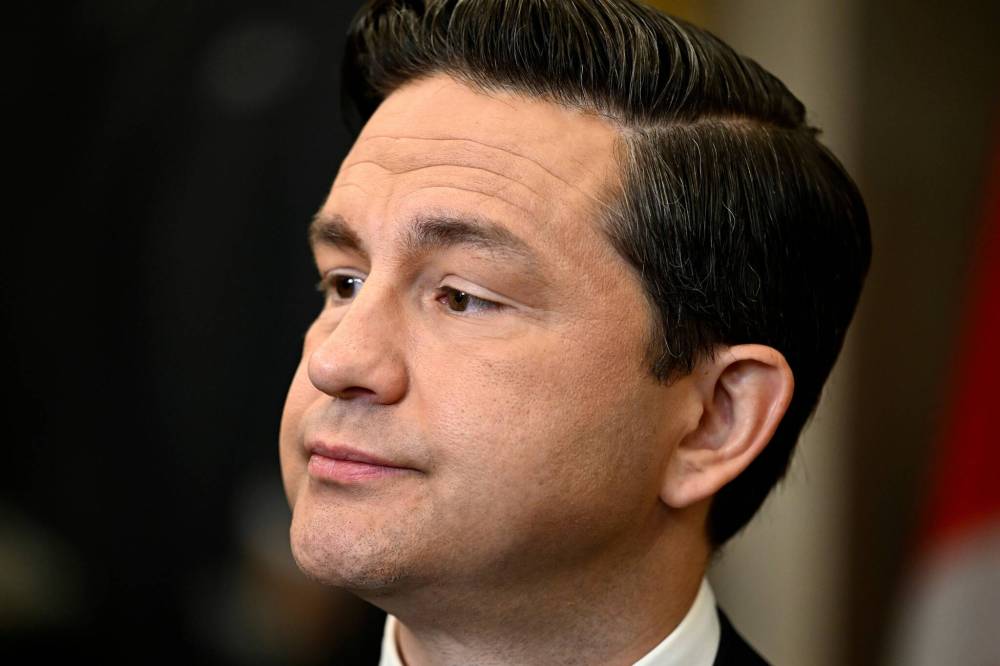 Conservative Leader Pierre Poilievre speaks to reporters in the Foyer of the House of Commons on Parliament Hill in Ottawa on Oct. 3. (The Canadian Press)