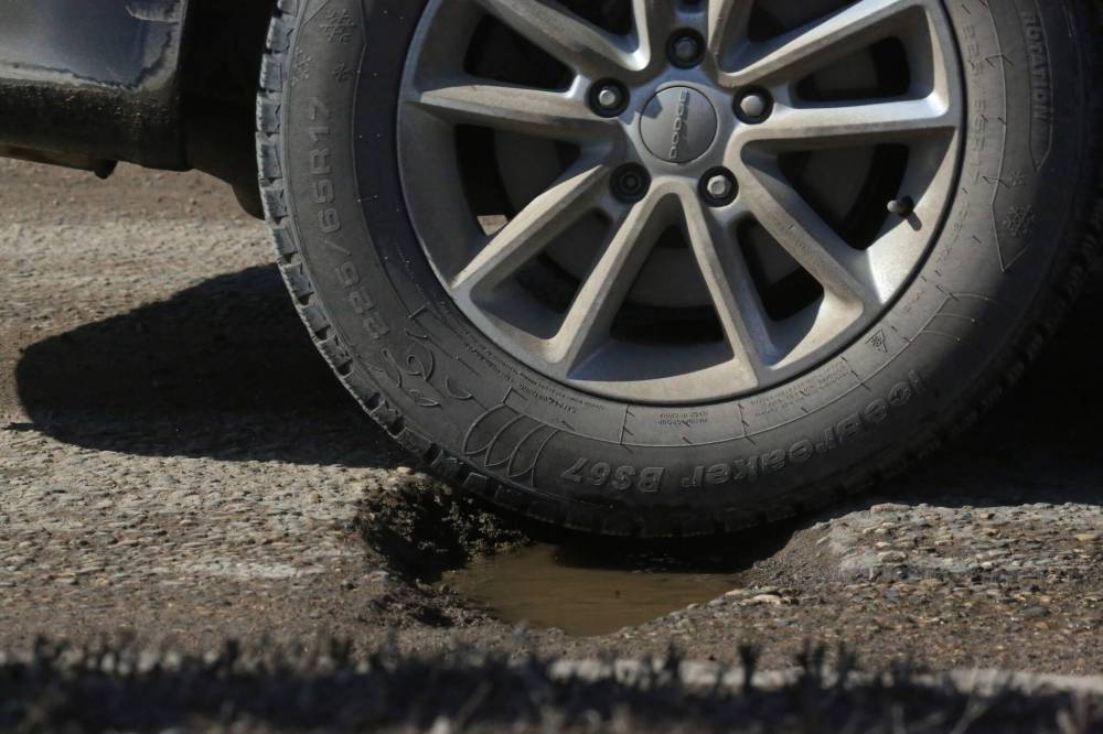 A tire on a northbound vehicle nearly hits the centre of a pothole on 18th Street near Richmond Avenue earlier this year. While we're glad the province has moved to fix crumbling 18th Street, we wonder why it took the CAA Manitoba "Worst Roads" campaign to get things rolling in the first place. (File)