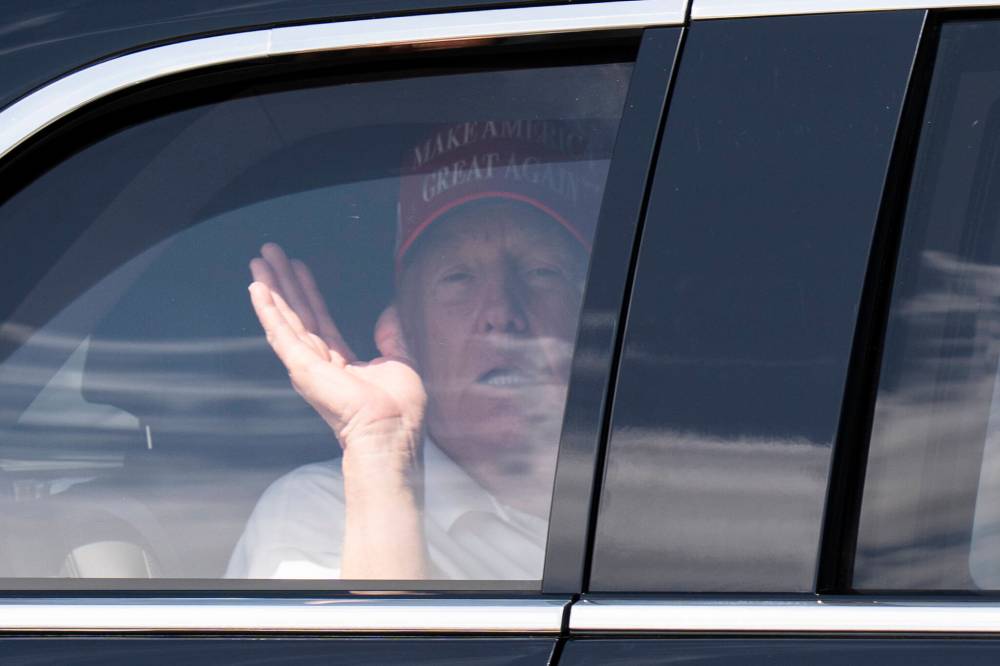 President Donald Trump waves from his limousine as he leaves Trump International Golf Club on Sunday, in West Palm Beach, Fla. Trump is at the forefront of surrendering America’s role as global protector and promoter of democracy. (The Associated Press)