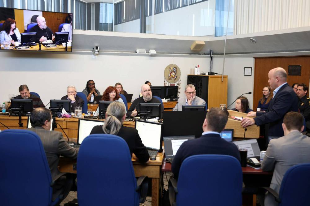 Brandon City Council members listen to Acting City Manager Terry Parlow during 2025 budget deliberations in January. (Tim Smith/The Brandon Sun files)