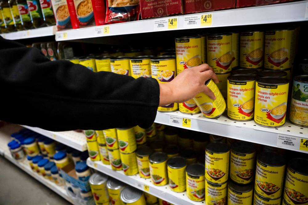 A shopper buys canned food at a grocery store in Neskantaga, Ont., last fall. Body cameras and increased security in grocery stores reflect growing concerns about retail theft. (The Canadian Press files)