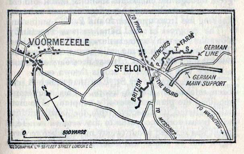 A map showing Voormezeele and St. Eloi from Sir Max Aitken’s “Canada in Flanders” (1916).