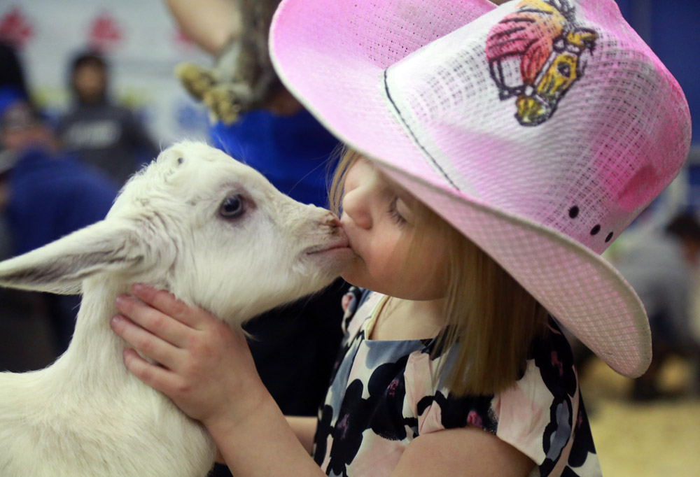 Brandon Sun Evelyn Pitchuck kisses a baby goat in the childrens' petting zoo at the 107th annual Royal Manitoba Winter Fair, Friday afternoon at the Keystone Centre. (Colin Corneau/Brandon Sun)