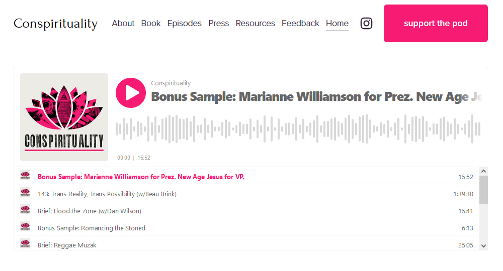 “Conspirituality” covers similar ground, but from a crunchy, left-wing perspective. The hosts are Derek Beres, Matthew Remski and Julian Walker. They are independent researchers, writers and podcasters with backgrounds in practising and teaching yoga and in surviving yoga cults. Their focus is where wellness and spirituality intersect with right-wing conspiracy theories. This is a strange and confusing landscape. But this podcast is touching something significant and I plan to visit this terrain again in the future.