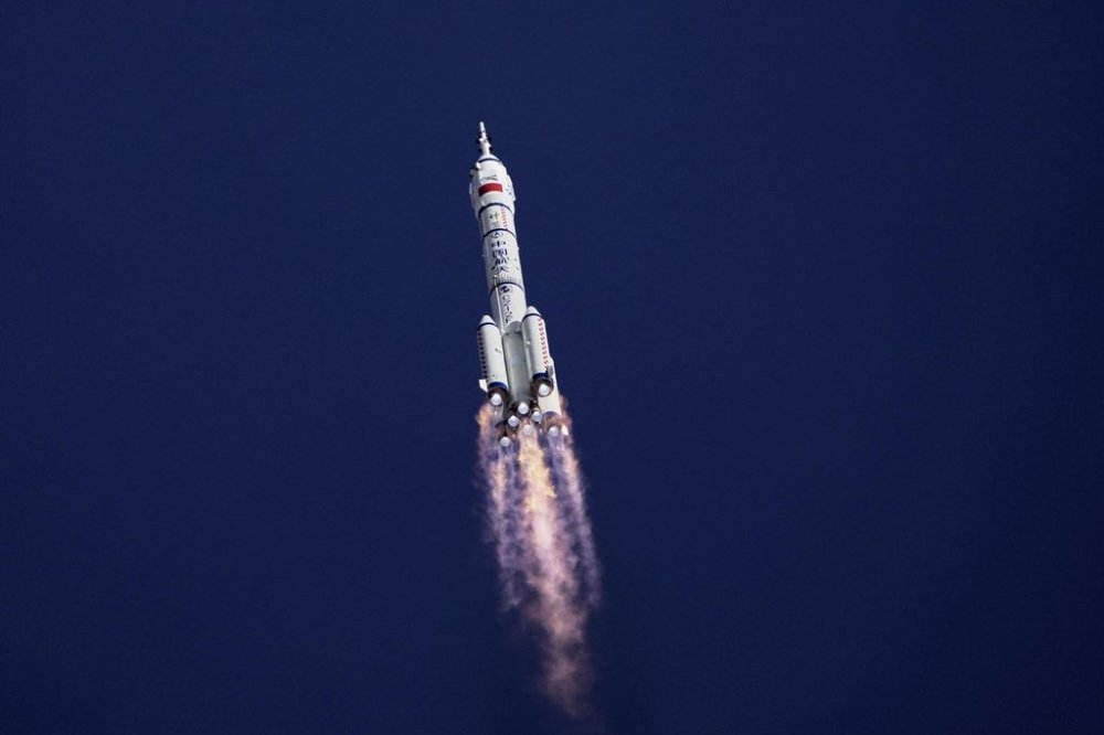The rocket lifted off from the launch center in Jiuquan, on the edge of the Gobi Desert in northwestern China. The spaceship will remain in space before returning with the current three-person crew.