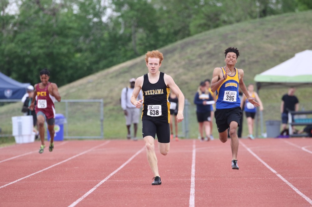 ON THE TRACK: Daniele Dyck of the Vincent Massey Vikings completed her double-gold, following up her varsity girls’ 100m gold with a 200m victory on Saturday, running the final in 25.35 seconds — .09 ahead of the second-place finisher.