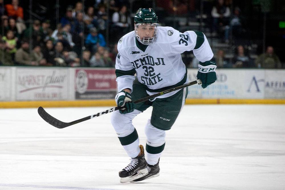 Zach Whitecloud spent two seasons with the NCAA's Bemidji State (Minn.) Beavers before signing an entry-level contract with the Vegas Golden Knights in March 2018. (BSU Photo Services)