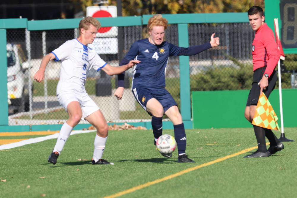 Brandon University Bobcats defender Victor Lamb (4) was named a tournament all-star at the CCAA men's soccer national championship after BU became the first Manitoba team to win a game at the event. (Photo courtesy CCAA)