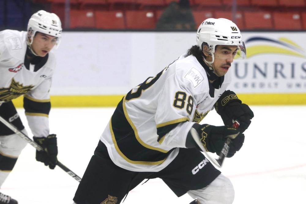 Brandon Wheat Kings forward Matteo Michels (88), shown during a recent game, will be facing his former Regina Pats teammates for the first time in Western Hockey League action at Westoba Place tonight at 7 p.m. The Wheat Kings have rebranded for a night and will be wearing Wheat City Walleye uniforms during the game. (Perry Bergson/The Brandon Sun)