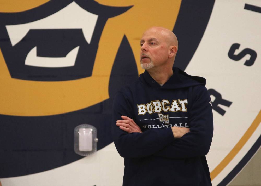 Grant Wilson prepares his Brandon University Bobcats men's volleyball team to face his son Reece and the Fraser Valley Cascades tonight at the Healthy Living Centre. (Thomas Friesen/The Brandon Sun)