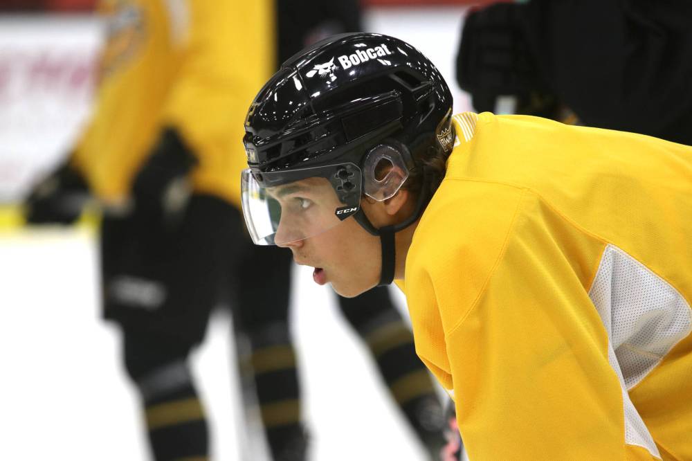 Joby Baumuller of Wilcox, Sask., was the team's first rounder in 2022 and won gold at the World U17 Hockey Challenge last month. (Perry Bergson/The Brandon Sun)