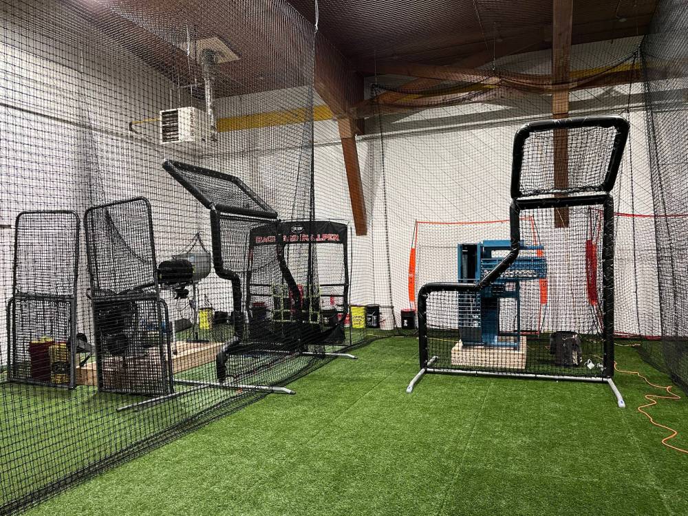 On the far side of the old curling club, there is 2,000 square feet devoted to batting cages, including a dedicated spot for softball, another for baseball and a third devoted to pitchers.