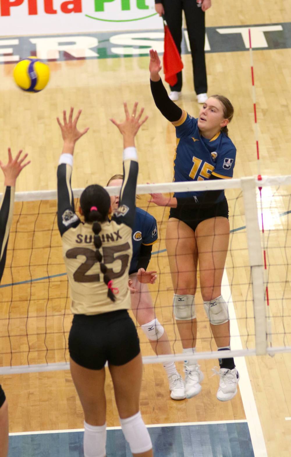 “Almost every team has had a big left side. Their left side carries their team. Having Ava, one of our tallest players out on right side trying to block, that’s where our head’s at,” Robinson said.