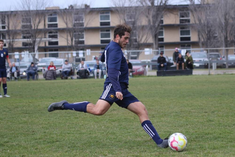 Matheus Ruffini scored the game-winning goal in the semifinal against CMU. (Thomas Friesen/The Brandon Sun)