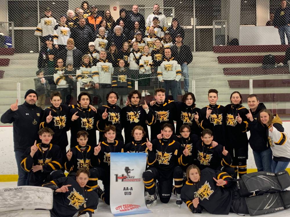 The Winnipeg U15 AA Hockey League champions finished in first with a stellar record of 25-3-0-0, averaging nearly five goals a game with 133 while allowing an average of less than 1.5 per game with 37. In the playoffs, they faced elimination three times in the quarterfinals and semifinals and earned a shutout each time, then swept Railcats Black in the final.