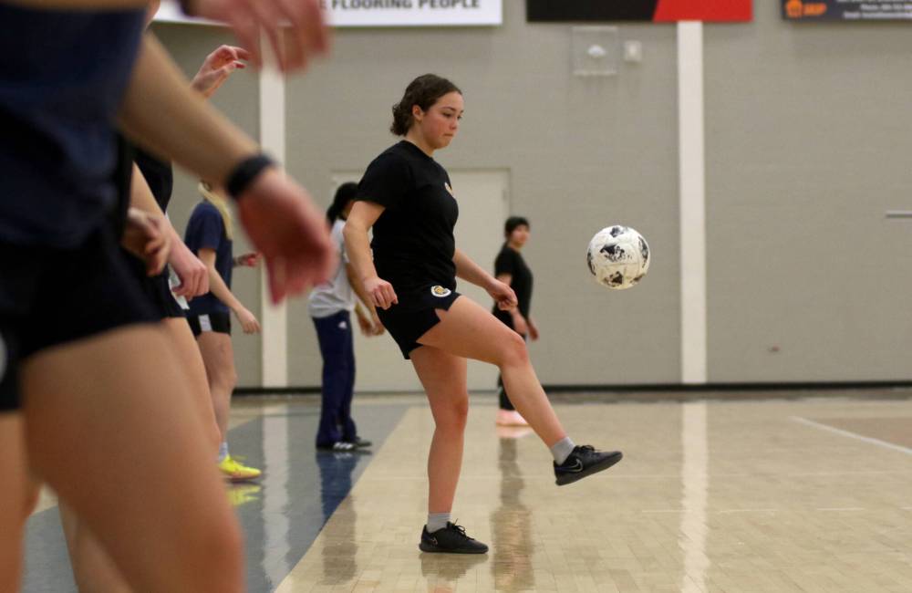 Brandon University Bobcat Shanti Church juggles a ball during women’s futsal practice at the Healthy Living Centre on Wednesday. MCAC season begins on Saturday. (Thomas Friesen/The Brandon Sun)