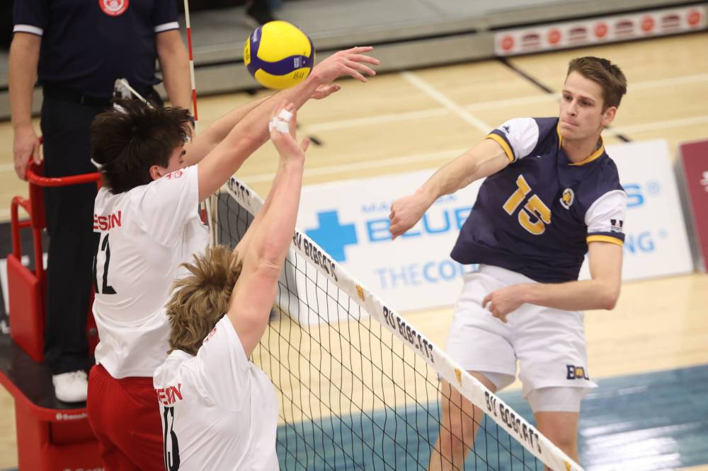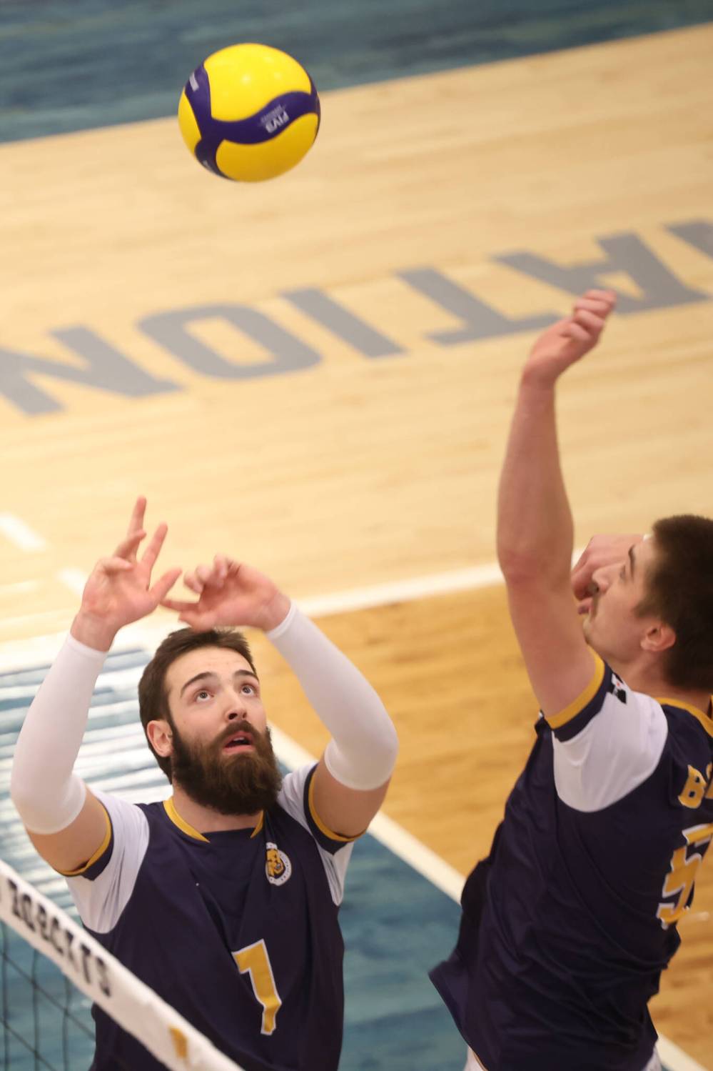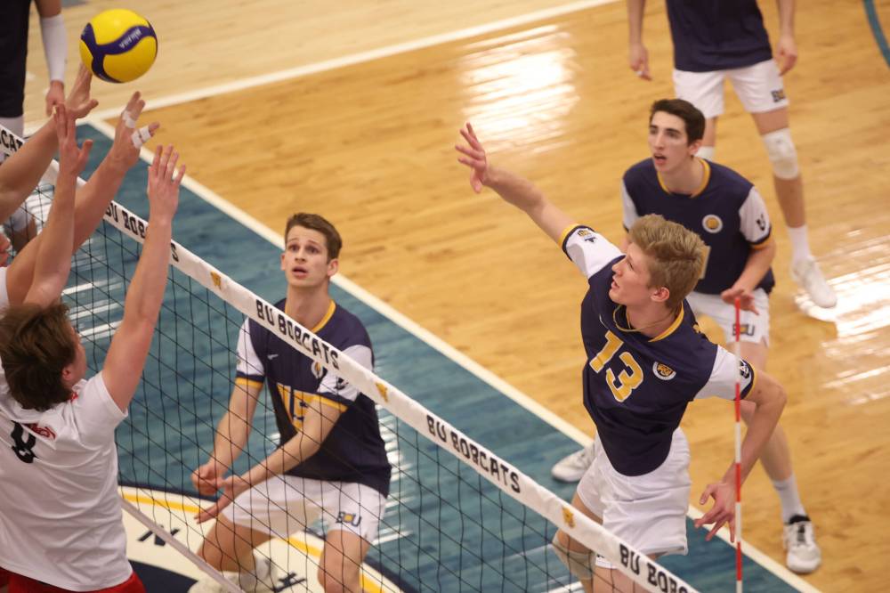 The Bobcats couldn’t get their middles going on offence — they combined for two kills and two errors — but Grusing and Liam Pauls were fantastic early in the set and Friesen, who came off the bench for Ryden Hargreaves in the second, carried BU back with three straight kills down the stretch.