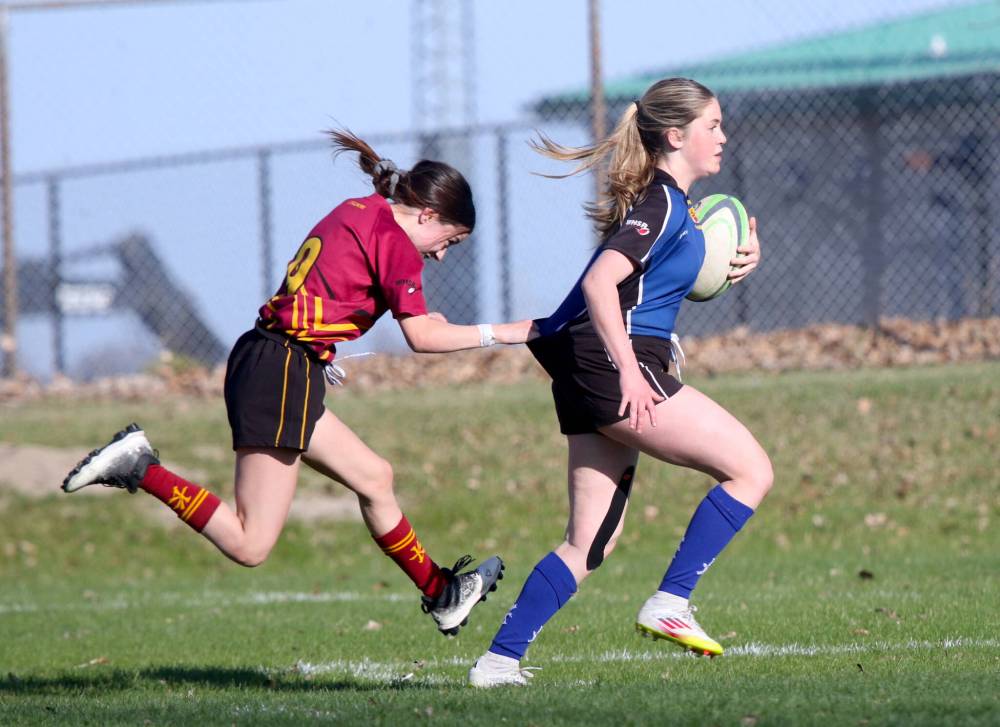 The hard-hitting senior is one of the handful of Rivers Rams players to join up with the Souris Sabres this Westman High School Rugby girls’ season, much to the team’s delight.