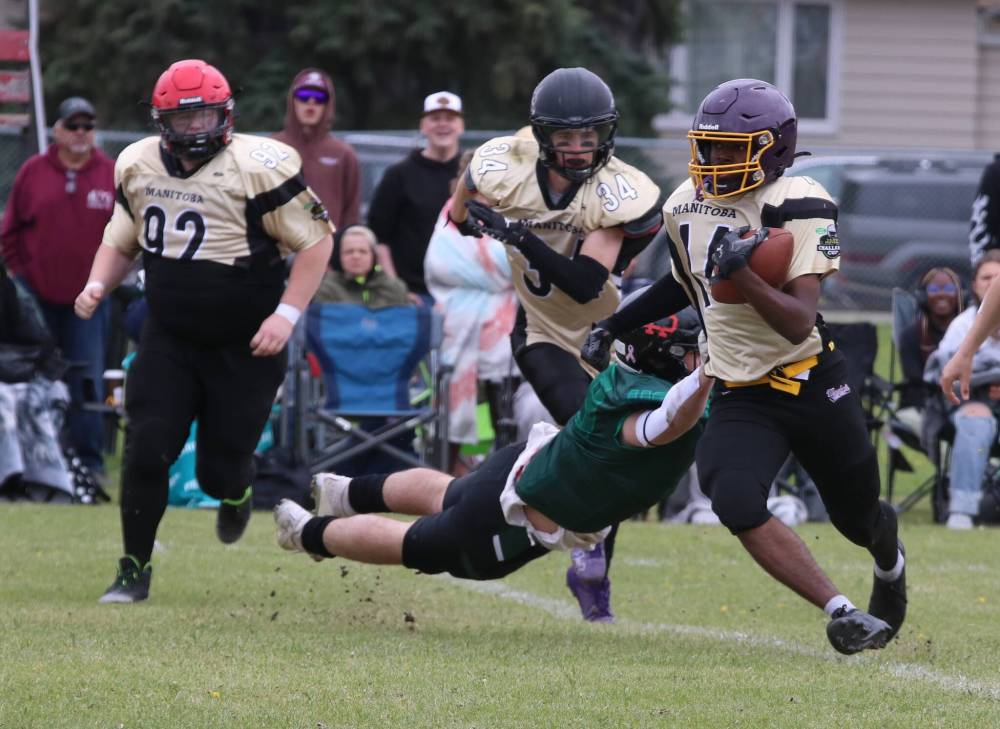 The Manitoba squad comes from the 11 teams in the Rural Manitoba Football League — including Moosomin — while Saskatchewan’s players are Grade 12 students from the 21 teams in the Saskatchewan High Schools Athletic Association football league. McEwen noted that things could have spiralled out of control but he was impressed with his team’s tightness as they weathered a tough day at the office.