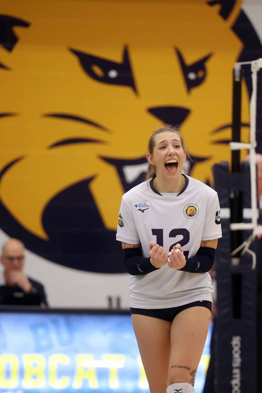 Stephanie Miller #12 of the Brandon Bobcats celebrates a point. (Tim Smith/The Brandon Sun)