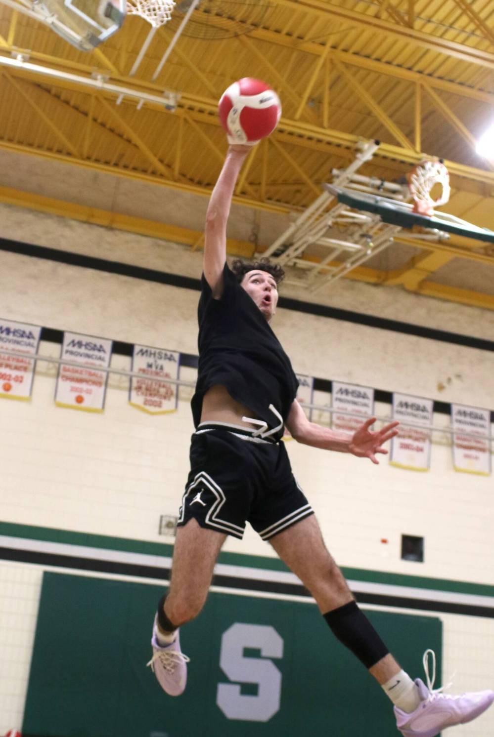 Clark Goran attacks a ball during Spartans practice on Monday. (Thomas Friesen/The Brandon Sun)