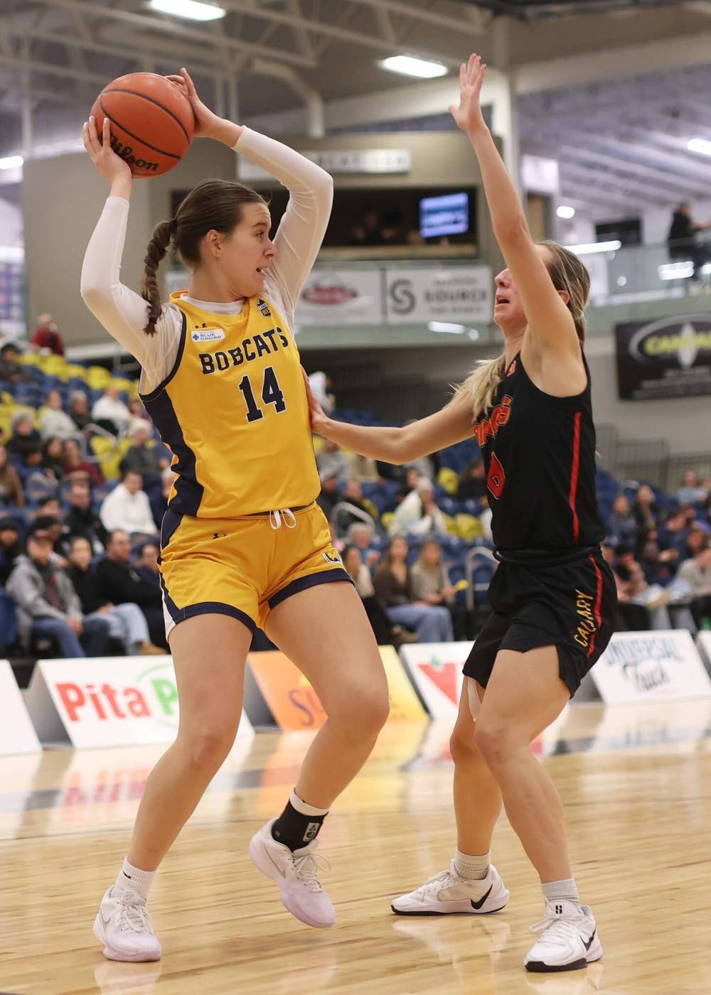 The Bobcats dropped one game at Lethbridge, then bounced back to grind out a 69-65 triumph.