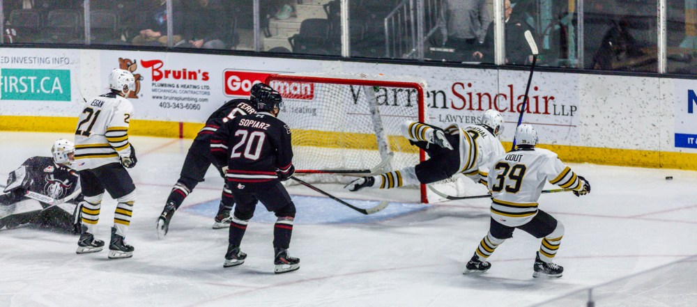 Three minutes later, defenceman Dylan Ronald ripped a heavy shot from the slot that prompted the goal judge to flip on the goal light but the puck actually hit the bar and the referee rightfully waved it off.