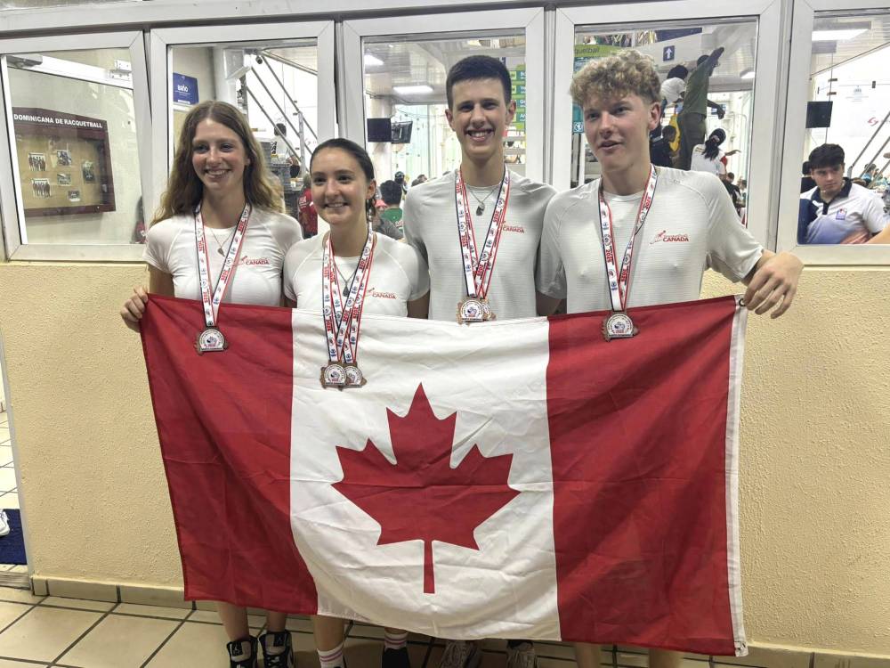 Canadians Lahni Buller, Chloe Jauvin, Leyton Gouldie and Raphael Guillemette celebrate with their medals following action in Santo Domingo, Dominican Republic. (Submitted)