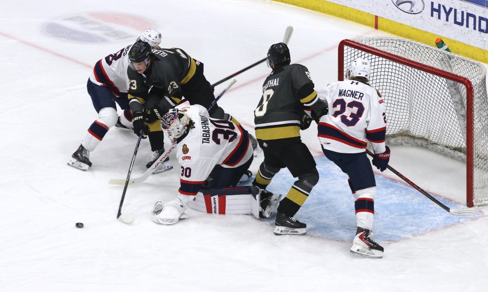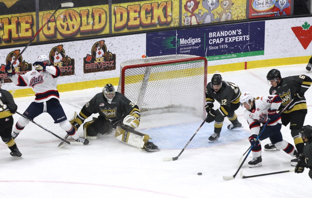 Brandon, which managed just eight shots on net in a listless third period, pulled Kraus with 2:35 left and Fawcett lifted a long shot over everyone and into the net with 1:27 remaining to salt the game away.