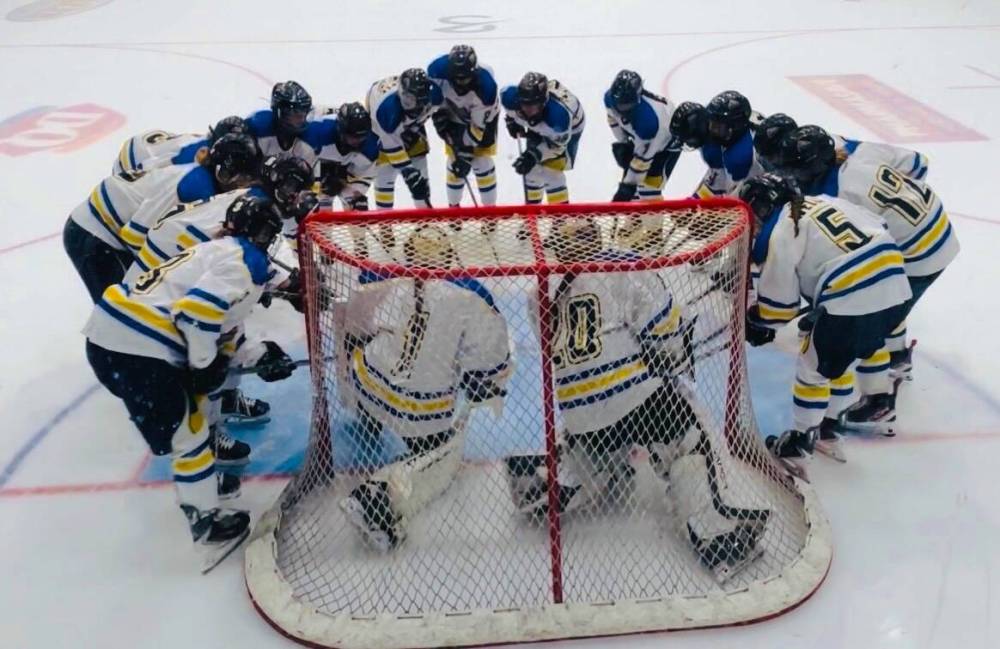 The Westman Wildcats huddle around the blue paint before action in the U15 AAA Manitoba Female Hockey League. (Submitted)