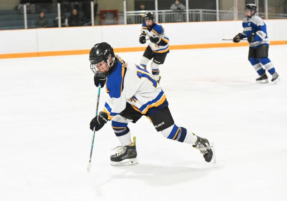 Kendra Grift uses her speed and grit to get to the right places while she is skating with the Rural Manitoba Female Hockey League’s under-18 Brandon Wheaties. (Submitted)