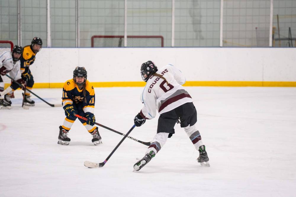 Through 19 games, the Cougars have clipped a 17-2 record, winning 13 games in a row to lead the West Region of the American Collegiate Hockey Association’s women’s Division 2 league. Their success is off the backs of their tight-knit locker room and also their shining skill and discipline on the ice, which has somehow managed to allow just 15 goals against in 19 games, while also averaging more than four goals per game.