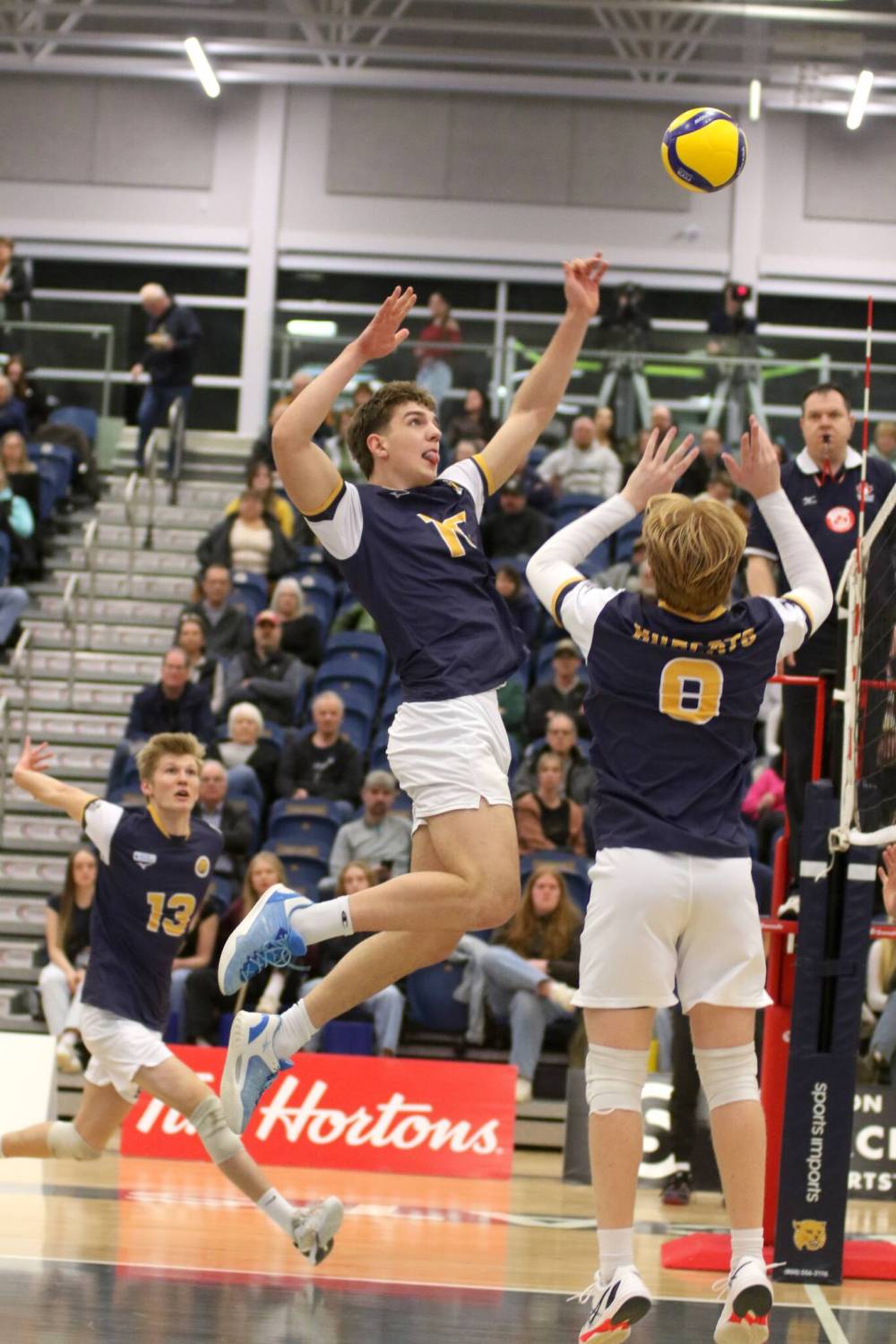 The Golden Bears didn’t have to attack much in the first set, thanks to their dominant defence. They scored with a few stuff blocks and turned some points around on libero Marek Edwards’ tough defence.