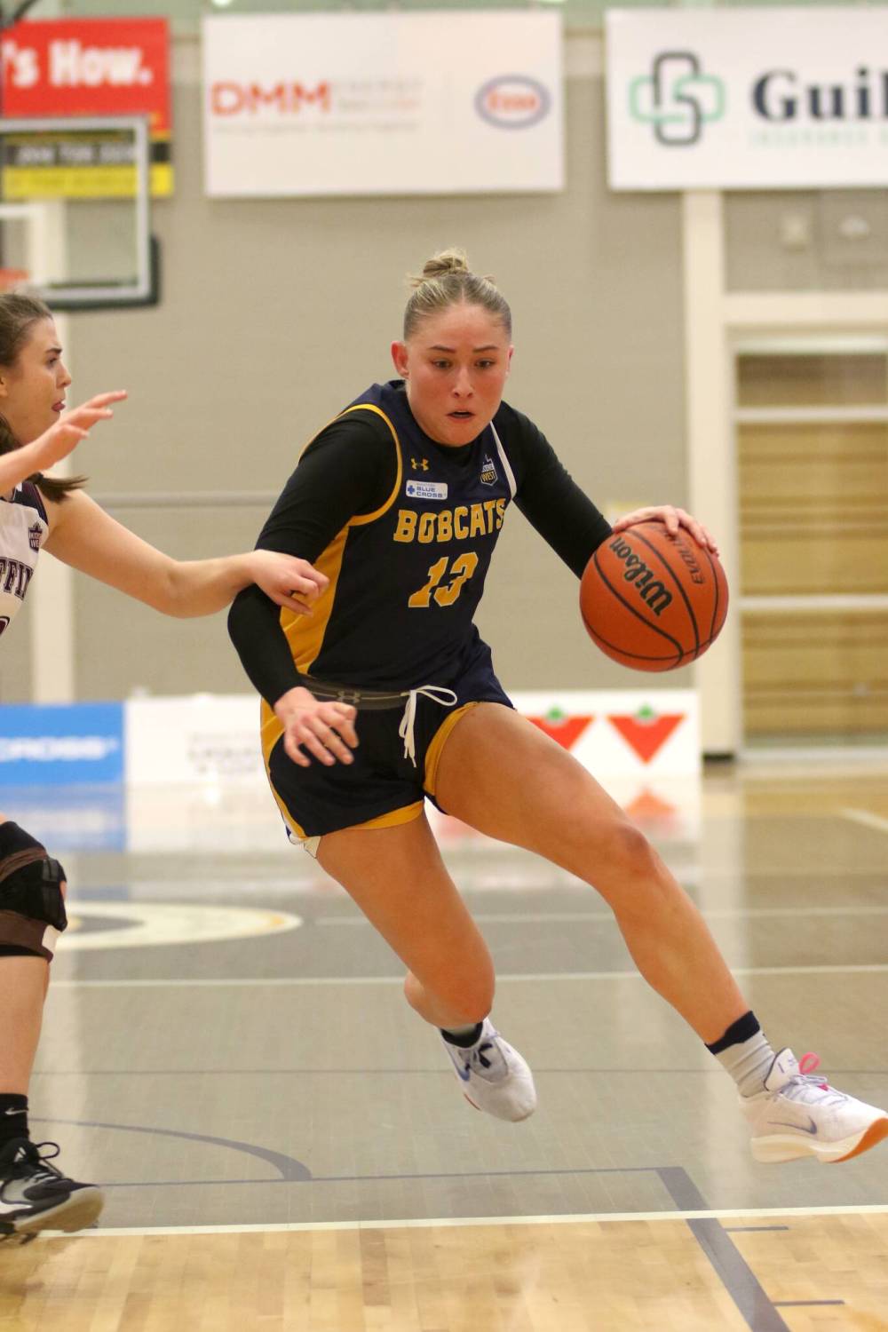 Piper Ingalls cracked 1,000 regular-season points in her Canada West women’s basketball career, becoming the second Bobcat to do so. She’ll try to win BU’s first playoff game since 2017 as the Bobcats take on the UBC Okanagan Heat on Friday in Regina at 2 p.m. (Thomas Friesen/The Brandon Sun)