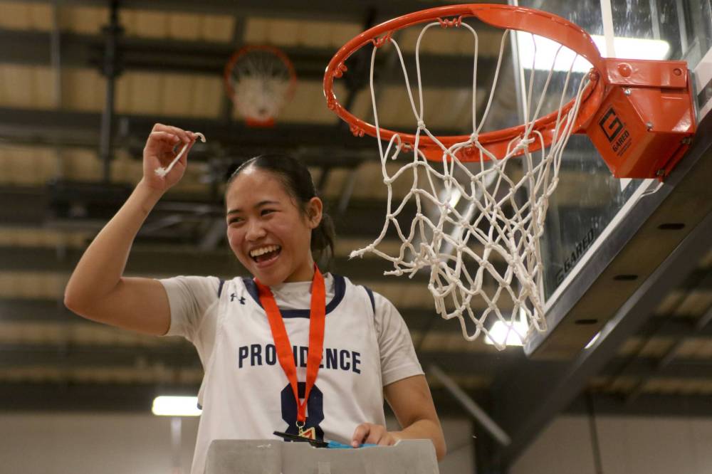 Virden’s Fiona Garcia captured the Manitoba Colleges Athletic Conference women’s basketball title with the Providence Pilots on Sunday in Niverville. (Thomas Friesen/The Brandon Sun)