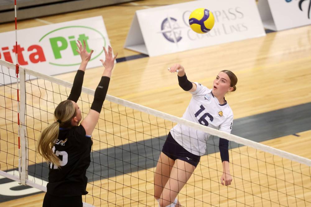 Middle blocker Alexa Parken stepped in for an injured Megan Pickford late in the first semester. (Tim Smith/The Brandon Sun)