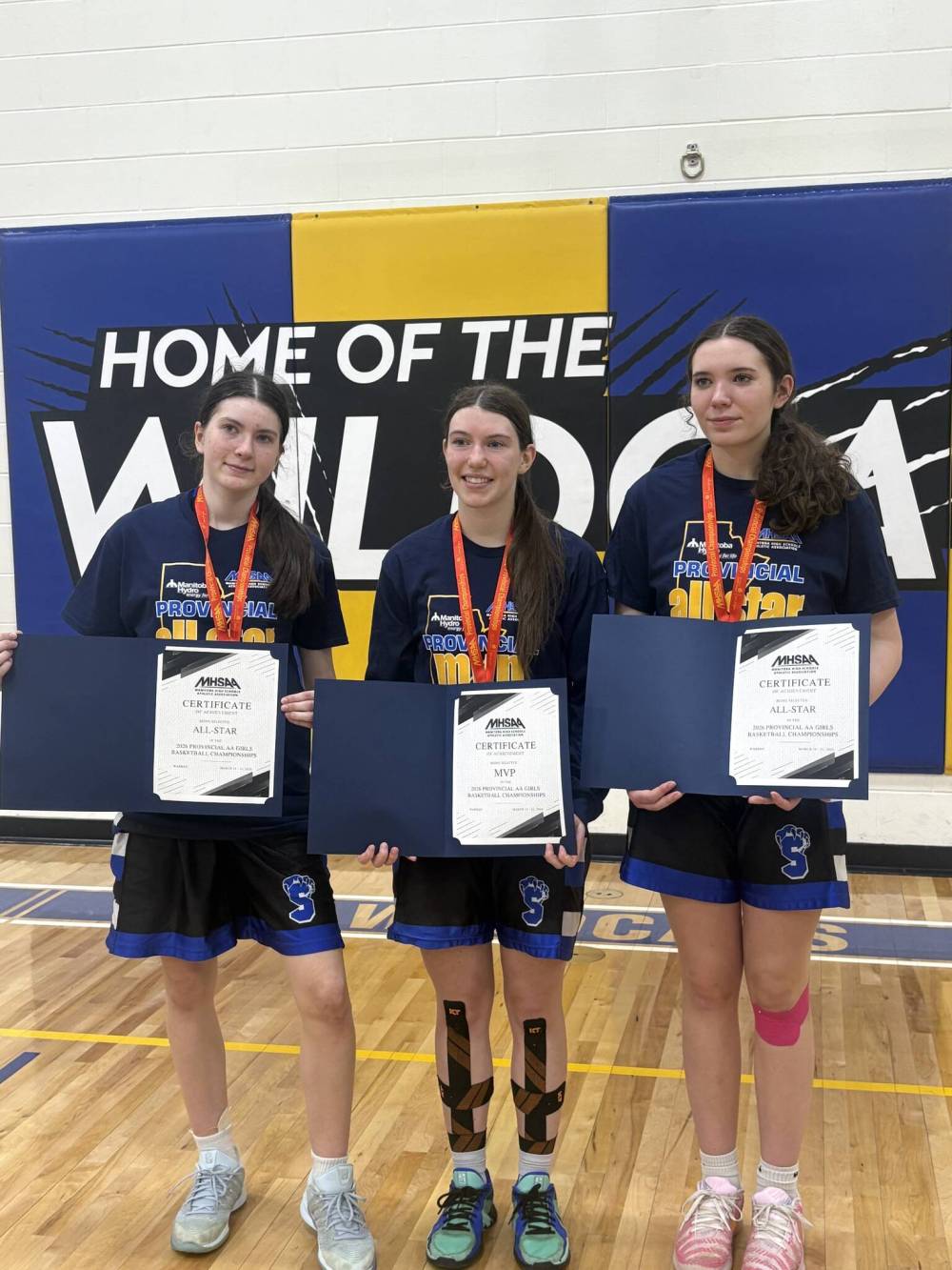 Provincial MVP Ivy Perkin, centre, is flanked by all-stars Blaire Laursen, left, and Tessa Penner. (Submitted)