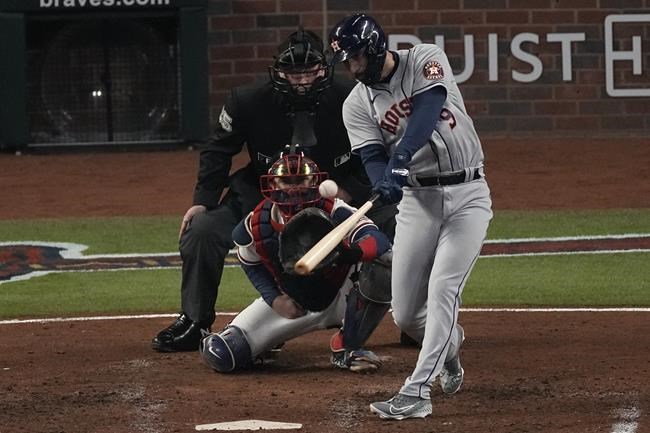 Gonzalez’s pinch single off A.J. Minter broke a fifth-inning tie, leading the comeback from a four-run deficit to a 9-5 win over the Atlanta Braves on Sunday night that cut Houston’s Series deficit to 3-2.