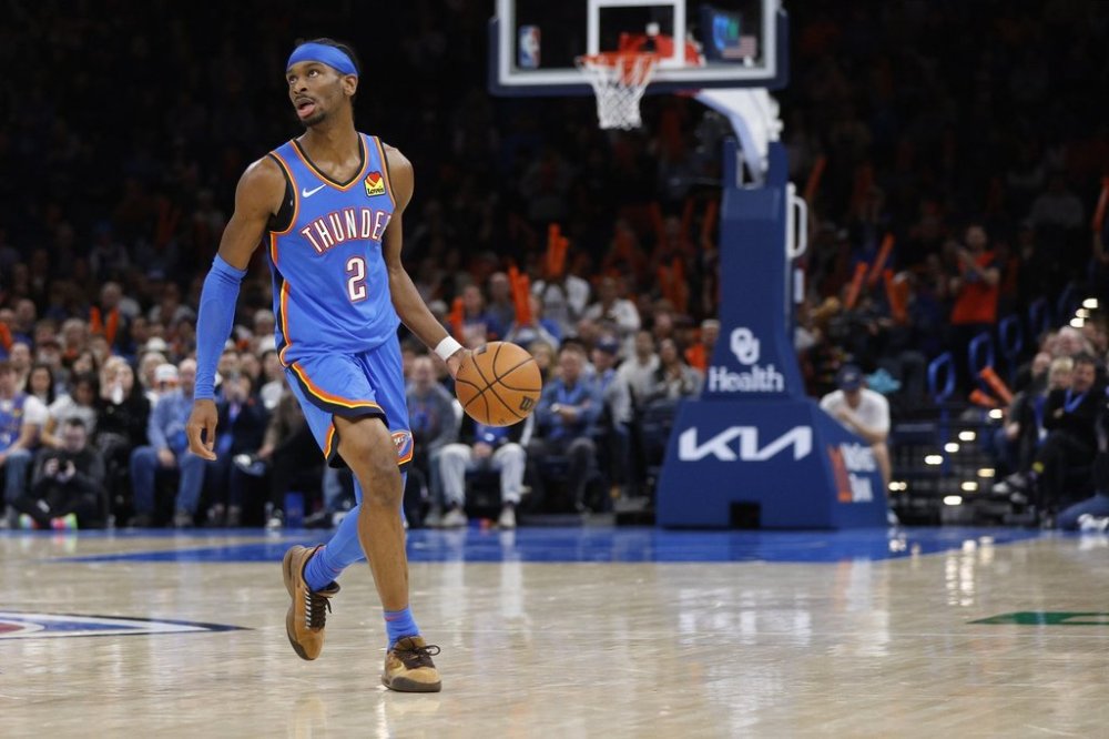 Oklahoma City Thunder guard Shai Gilgeous-Alexander dribbles during the second half of an NBA basketball game against the Miami Heat, Wednesday, Feb. 12, 2025, in Oklahoma City. THE CANADIAN PRESS/AP-Nate Billings
