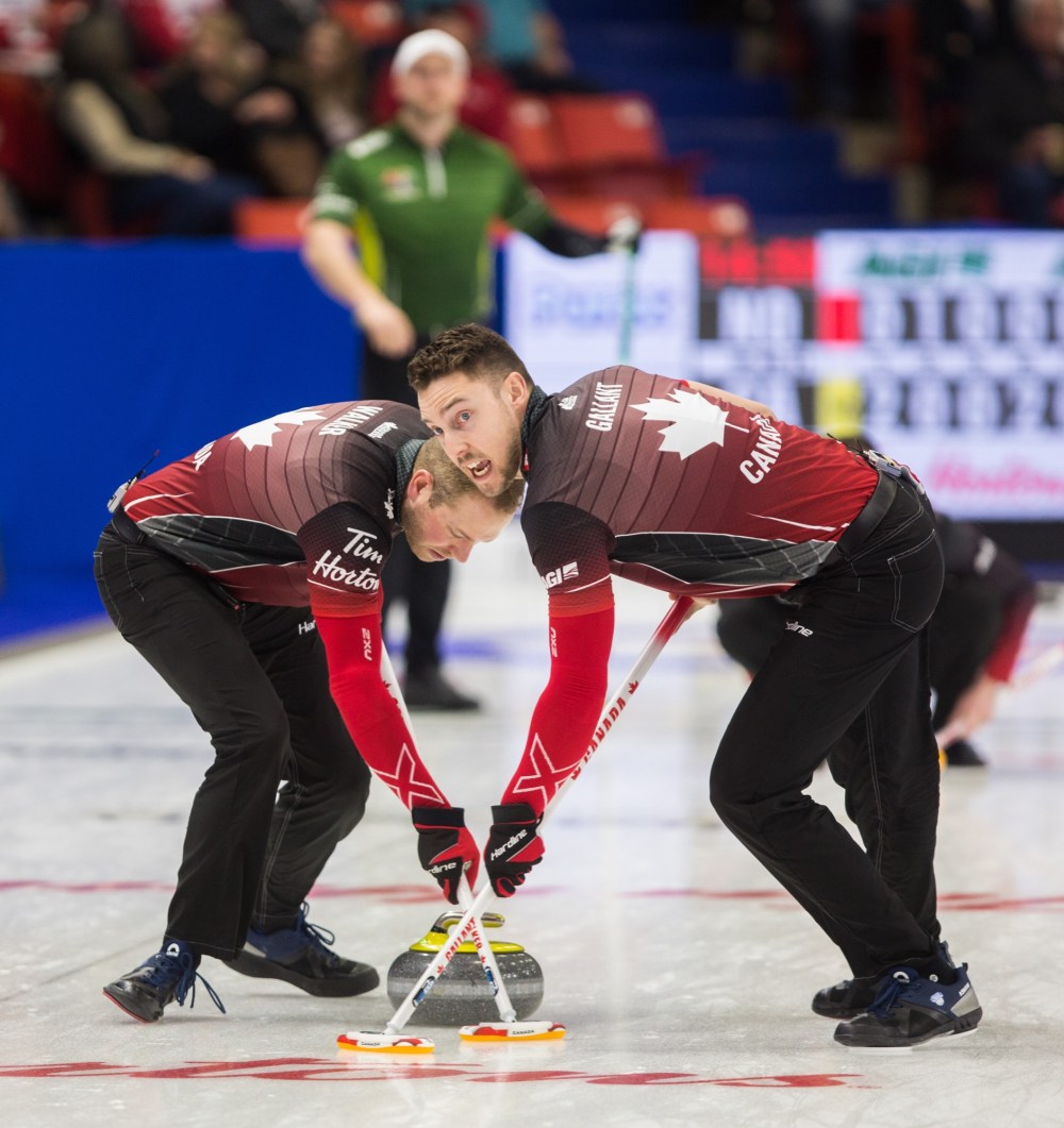 Gushue earned last-rock advantage in the first end of today’s elimination game at 2 p.m., with an 8-5 win in the final championship pool draw. The foursome, which includes third Mark Nichols, second Brett Gallant and lead Geoff Walker, stole a pair of points in the fourth end and another in the fifth to take a 5-2 lead they would not relinquish.