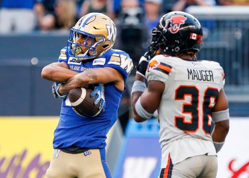 The Winnipeg receiver had seven catches for 200 yards and one touchdown as the Blue Bombers manhandled the Lions with a 50-14 victory on Thursday.