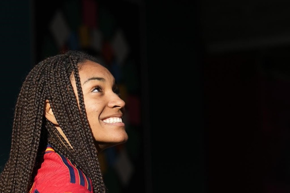 Spain's Salma Paralluelo smiles as she leaves the pitch at the end of the Women's World Cup quarterfinal soccer match between Spain and the Netherlands in Wellington, New Zealand, Friday, Aug. 11, 2023. (AP Photo/Alessandra Tarantino)