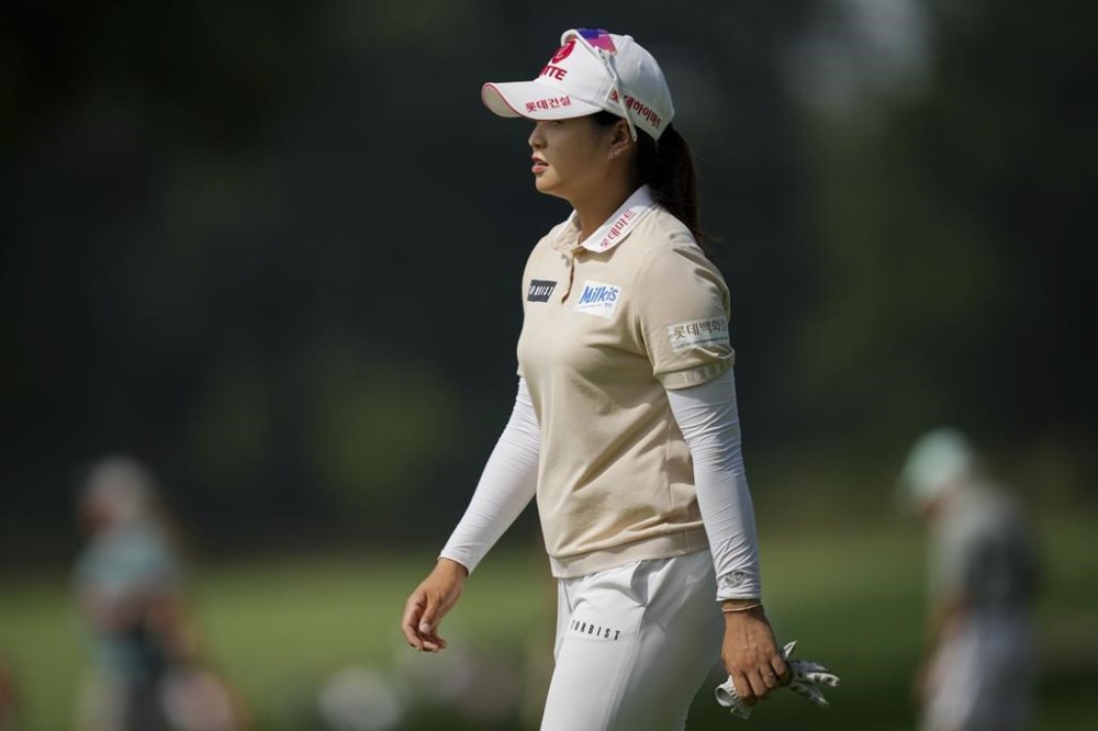 Hye-Jin Choi, of South Korea, walks to the fifth green during the first round of the LPGA Tour Kroger Queen City Championship golf tournament in Cincinnati, Thursday, Sept. 7, 2023. (AP Photo/Aaron Doster)