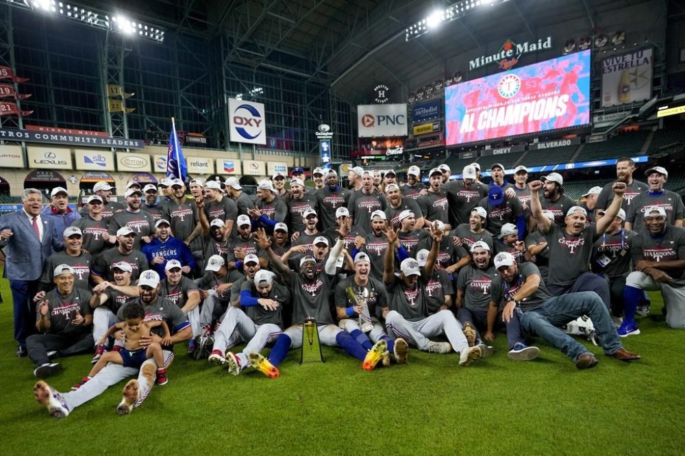 Corey Seager got the Rangers started with a long homer in a three-run first inning. Nathaniel Lowe also went deep to give Texas — one of six major league teams without a World Series title — its first berth in the Fall Classic since consecutive trips in 2010 and 2011.