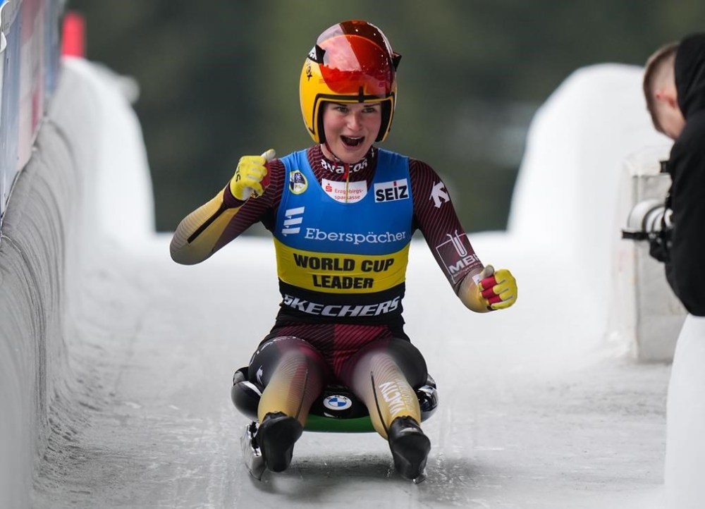 Julia Taubitz led a German podium sweep among World Cup competitors. She grabbed gold with a time of 1:18.066 seconds.