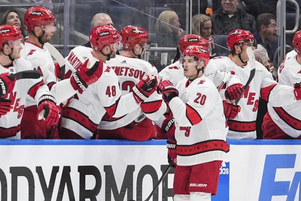 Sebastian Aho also scored for the Hurricanes and Andrei Svechnikov had two assists. Frederik Andersen stopped 29 shots. Carolina won for eighth time in nine games at UBS Arena, which opened for the 2021-22 season.