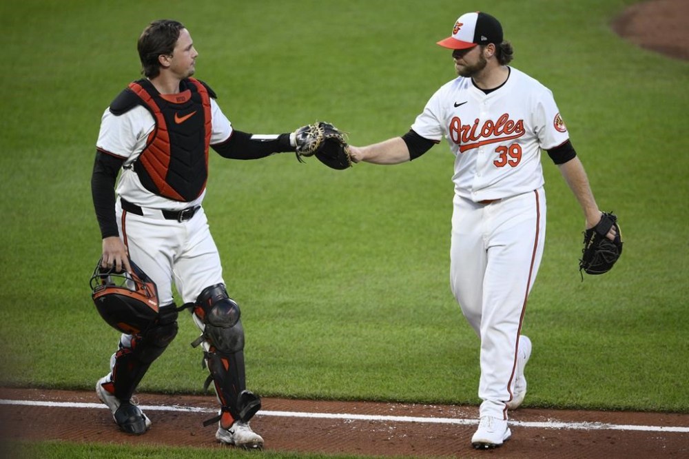 It was the first multihomer game for Rutschman, but the Orioles managed only one other hit on the night. Ryan O’Hearn nearly followed Rutschman’s solo shot in the fourth with one of his own, but Varsho made a leaping catch above the wall in centre field.